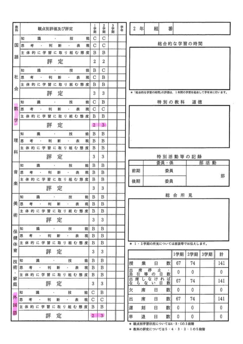 通知表が返ってきたと思います!