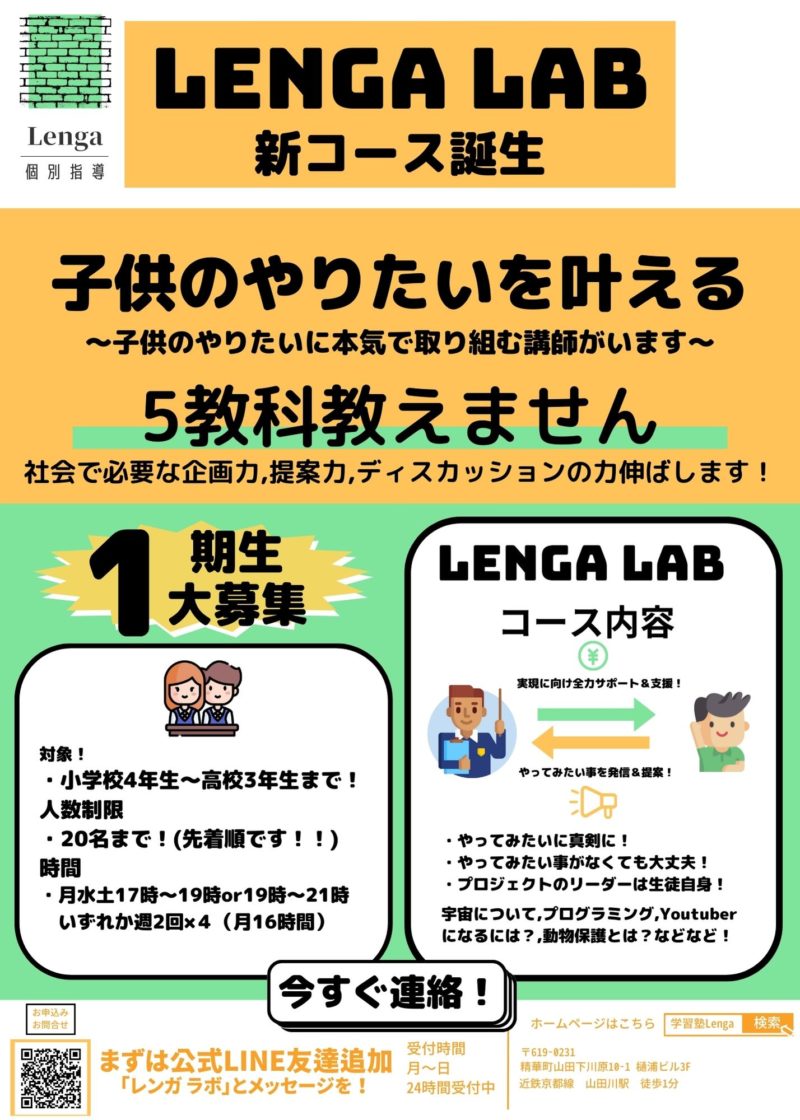 木津川市塾、精華町塾、山田川駅 学習塾レンガでは