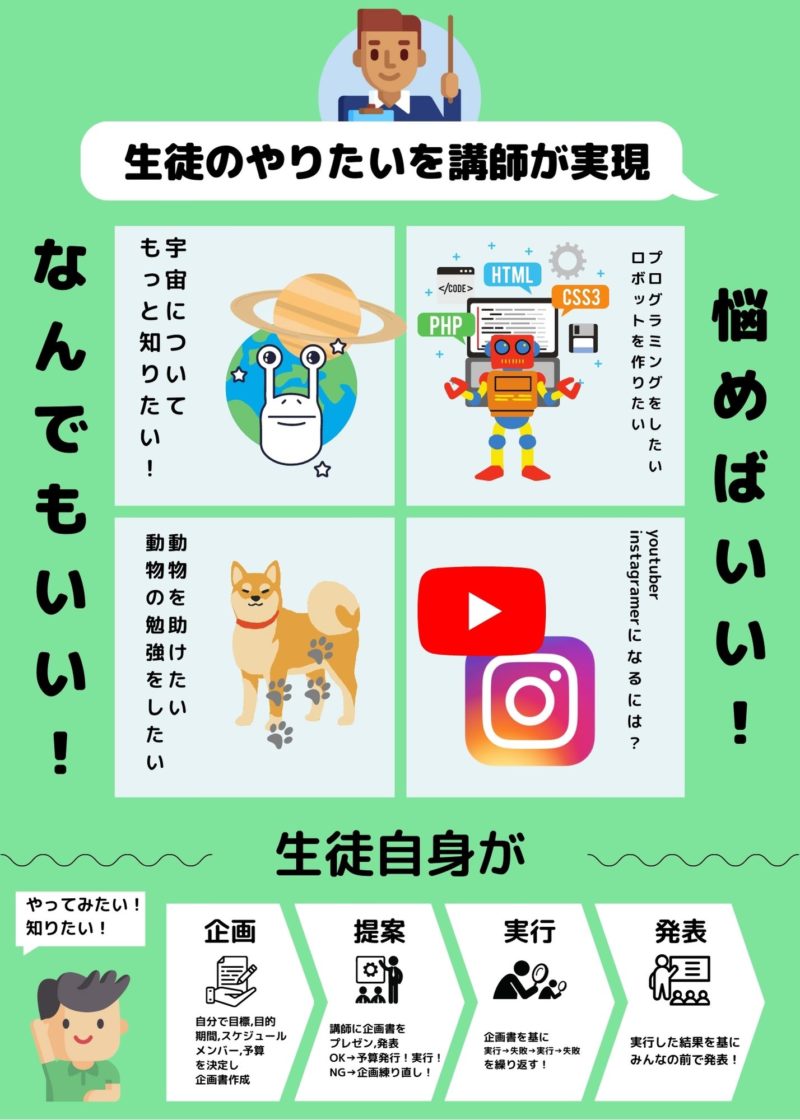 など学習塾レンガではお子様の「なぜ?知りたい!どういう事?やってみたい!」